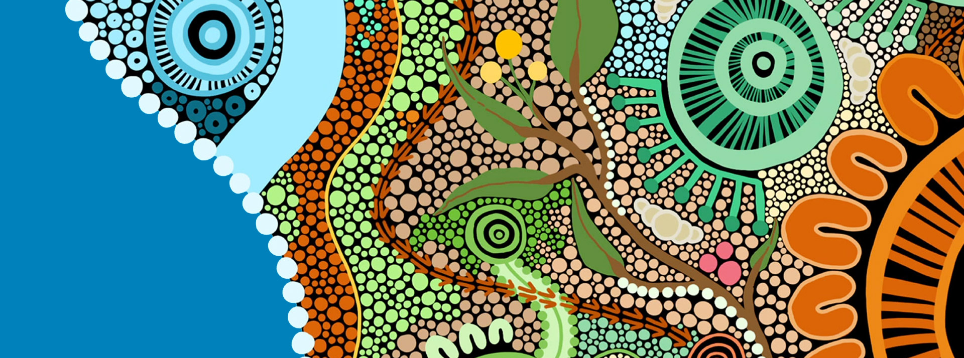 The artwork is an interpretation of an Acknowledgement of Country in paint form.