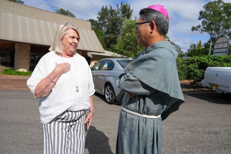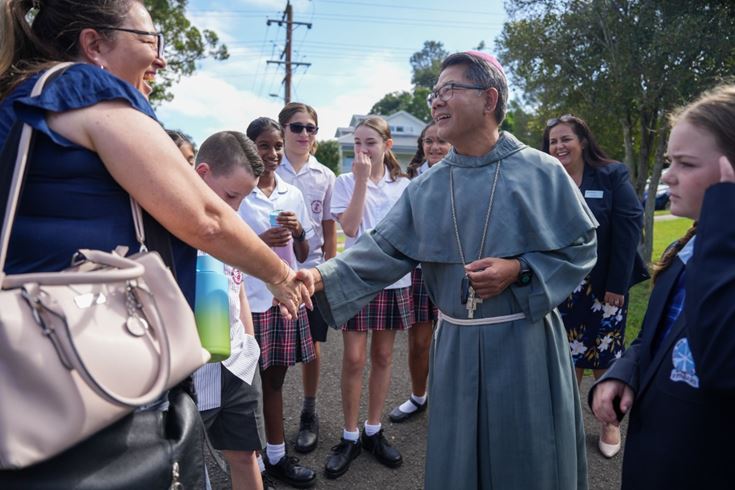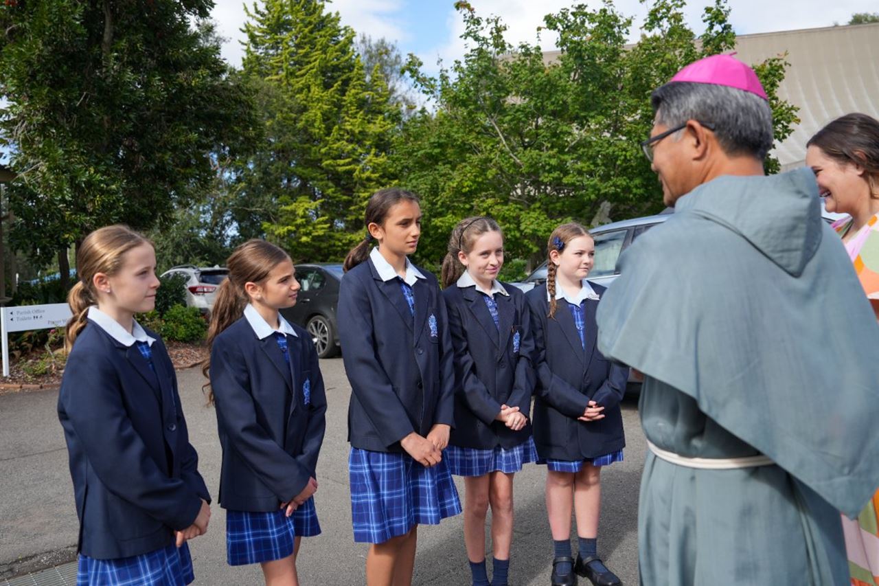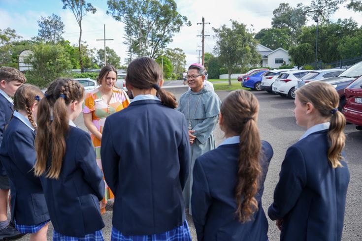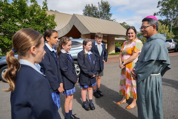 Bishop Vincent Long greeted students and teachers at the Project Compassion launch at St Finbar’s Primary Glenbrook.