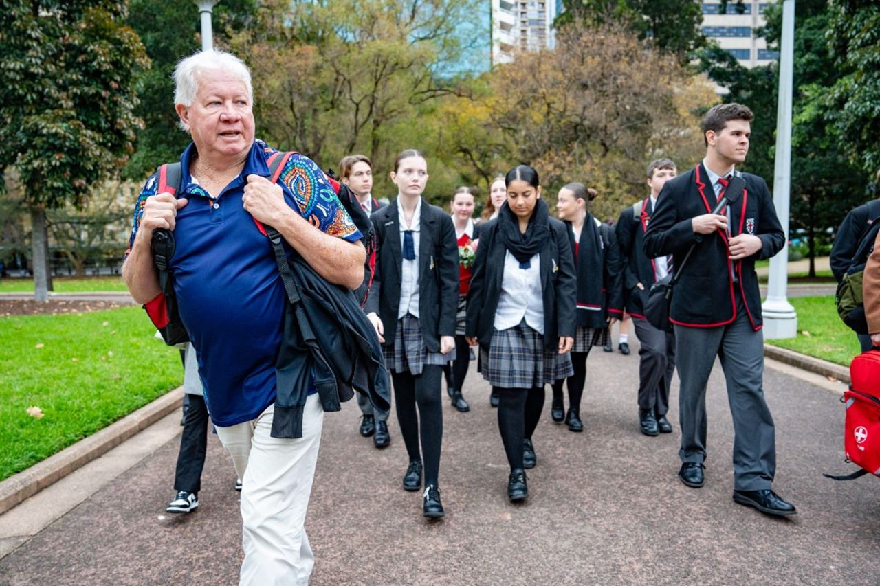Catholic Schools Parramatta Diocese (CSPD) students, staff and members of the Jarara Cultural Centre gathered around Hyde Park’s Pool of Reflection for the 2024 Indigenous Veterans Commemoration Service at Hyde Park.